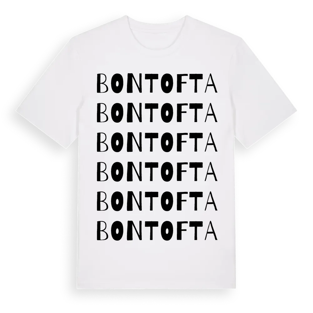 Bontofta ordlek t-shirt är inspirerad av byn Bontofta i Skåne län, Sverige. Tröjan är designad för dig som har en speciell koppling till platsen – oavsett om du bor här, har rötterna här eller bara älskar Bontofta.