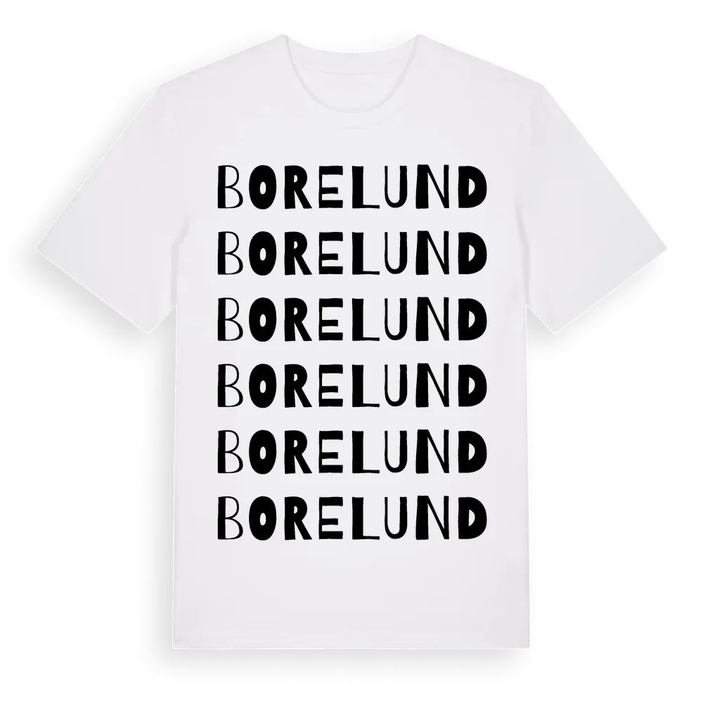 Borelund ordlek t-shirt är inspirerad av byn Borelund i Skåne län, Sverige. Tröjan är designad för dig som har en speciell koppling till platsen – oavsett om du bor här, har rötterna här eller bara älskar Borelund.