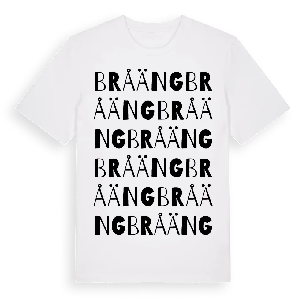 Bråäng ordlek t-shirt är inspirerad av Bråäng i Skåne län, Sverige. Tröjan är designad för dig som har en speciell koppling till platsen – oavsett om du bor här, har rötterna här eller bara älskar Bråäng.
