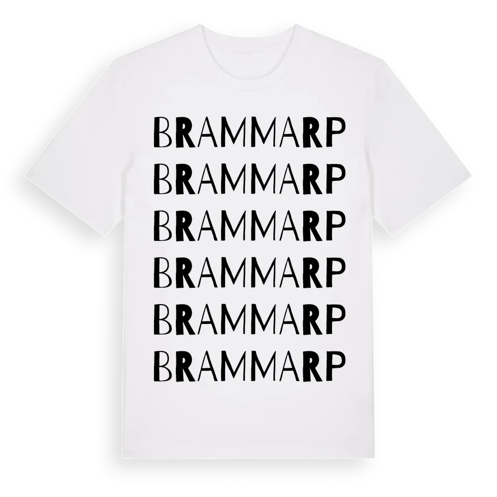 Brammarp ordlek t-shirt är inspirerad av byn Brammarp i Skåne län, Sverige. Tröjan är designad för dig som har en speciell koppling till platsen – oavsett om du bor här, har rötterna här eller bara älskar Brammarp.
