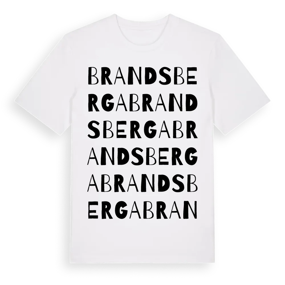 Brandsberga ordlek t-shirt är inspirerad av byn Brandsberga i Skåne län, Sverige. Tröjan är designad för dig som har en speciell koppling till platsen – oavsett om du bor här, har rötterna här eller bara älskar Brandsberga.