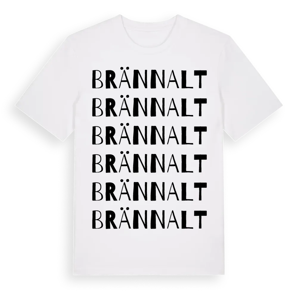 Brännalt ordlek t-shirt är inspirerad av byn Brännalt i Skåne län, Sverige. Tröjan är designad för dig som har en speciell koppling till platsen – oavsett om du bor här, har rötterna här eller bara älskar Brännalt.