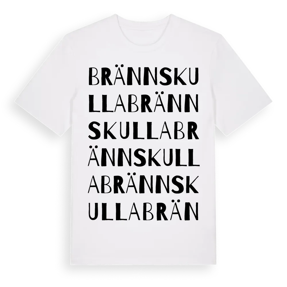 Brännskulla ordlek t-shirt är inspirerad av byn Brännskulla i Skåne län, Sverige. Tröjan är designad för dig som har en speciell koppling till platsen – oavsett om du bor här, har rötterna här eller bara älskar Brännskulla.