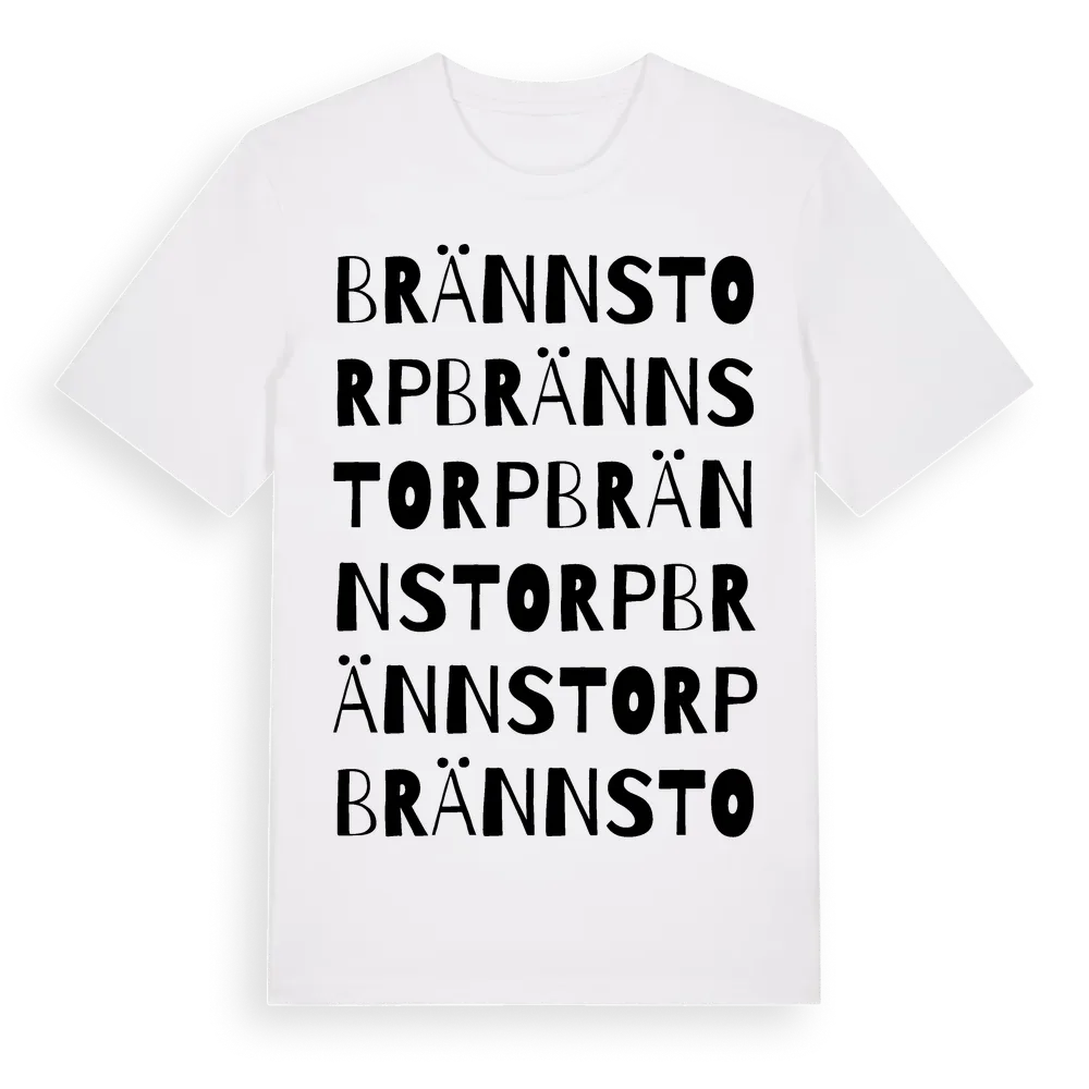 Brännstorp ordlek t-shirt är inspirerad av Brännstorp i Skåne län, Sverige. Tröjan är designad för dig som har en speciell koppling till platsen – oavsett om du bor här, har rötterna här eller bara älskar Brännstorp.