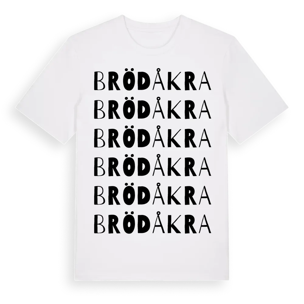 Brödåkra ordlek t-shirt är inspirerad av byn Brödåkra i Skåne län, Sverige. Tröjan är designad för dig som har en speciell koppling till platsen – oavsett om du bor här, har rötterna här eller bara älskar Brödåkra.