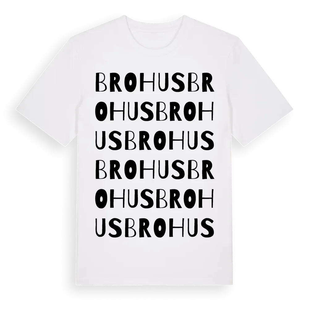 En ordlek byggd på Brohuss namn. Subtilt och klurig – ett motiv som bara de som verkligen känner platsen fullt ut förstår. Premium bomull, unisex – från byn Brohus i Skåne län.