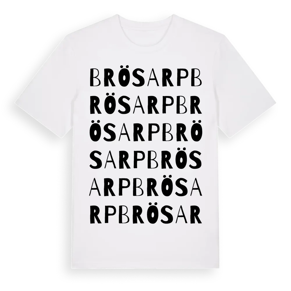 Brösarp ordlek t-shirt är inspirerad av byn Brösarp i Skåne län, Sverige. Tröjan är designad för dig som har en speciell koppling till platsen – oavsett om du bor här, har rötterna här eller bara älskar Brösarp.