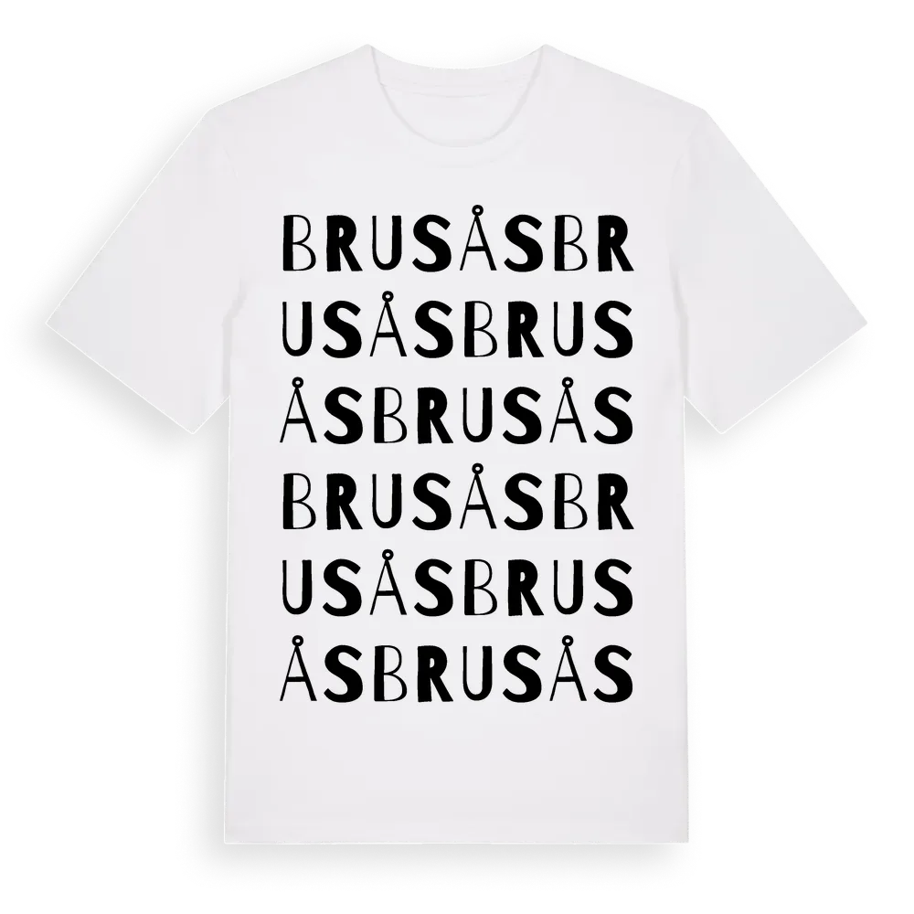 Brusås ordlek t-shirt är inspirerad av Brusås i Skåne län, Sverige. Tröjan är designad för dig som har en speciell koppling till platsen – oavsett om du bor här, har rötterna här eller bara älskar Brusås.
