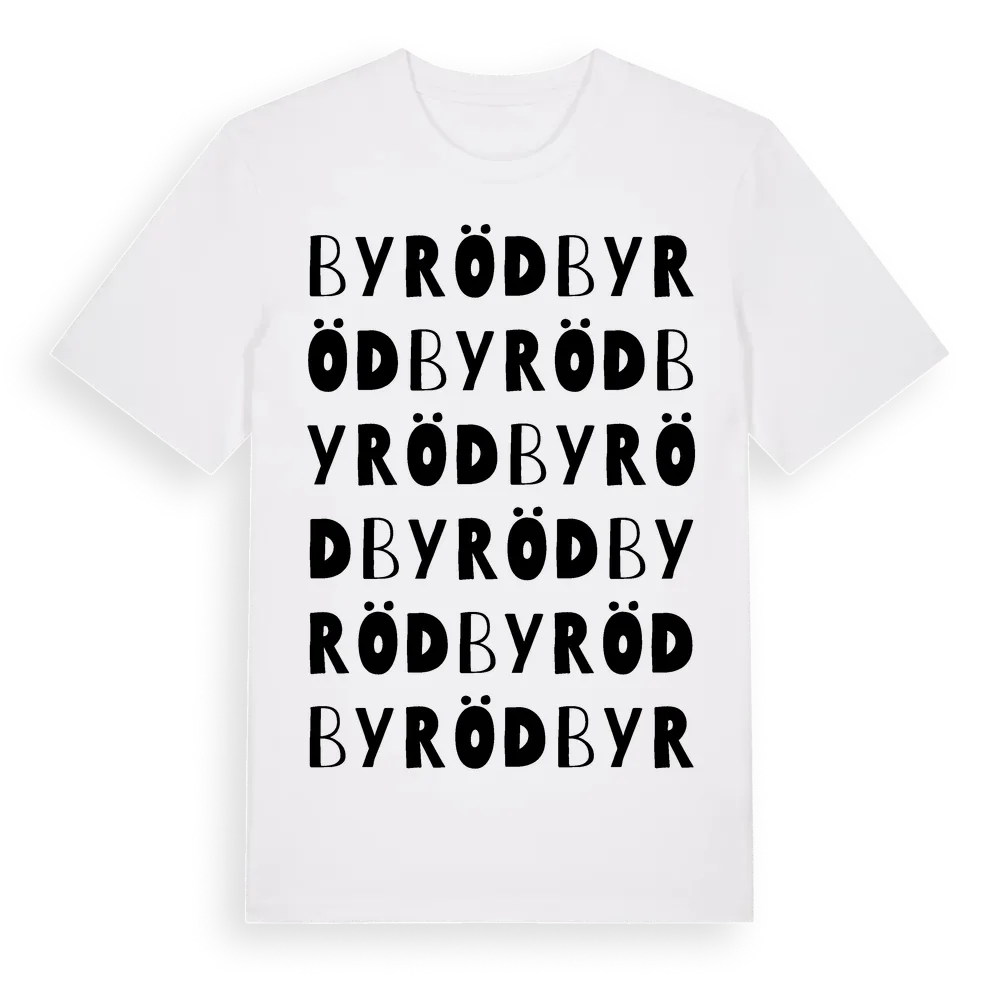 Byröd ordlek t-shirt är inspirerad av Byröd i Skåne län, Sverige. Tröjan är designad för dig som har en speciell koppling till platsen – oavsett om du bor här, har rötterna här eller bara älskar Byröd.