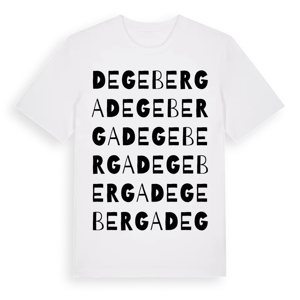Degeberga ordlek t-shirt är inspirerad av byn Degeberga i Skåne län, Sverige. Tröjan är designad för dig som har en speciell koppling till platsen – oavsett om du bor här, har rötterna här eller bara älskar Degeberga.