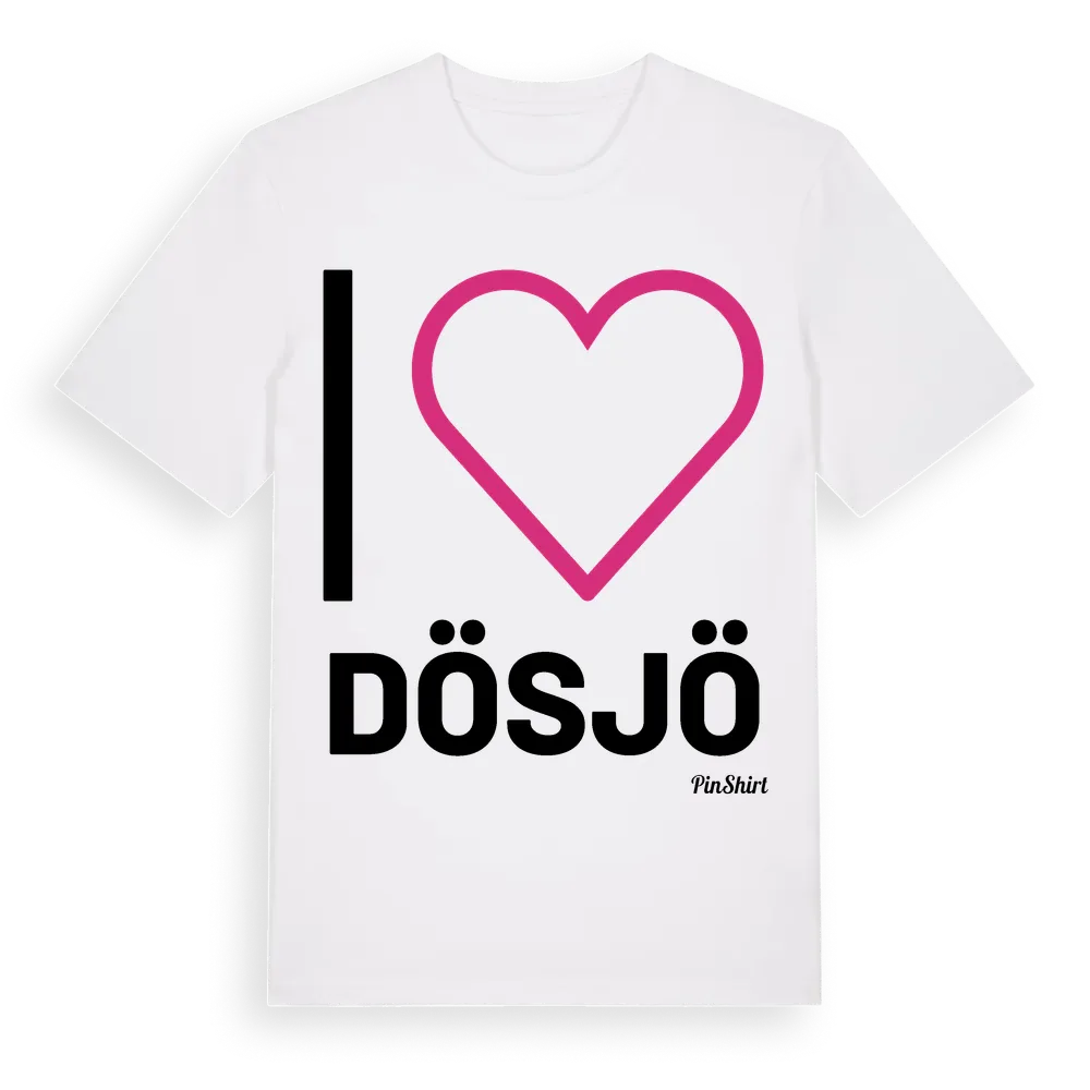 Det klassiska "I ❤ Dösjö"-motivet i stort format som täcker hela bröstet. För dig som vill visa kärleken till Dösjö på riktigt. Premium bomull, unisex – från Dösjö i Skåne län.