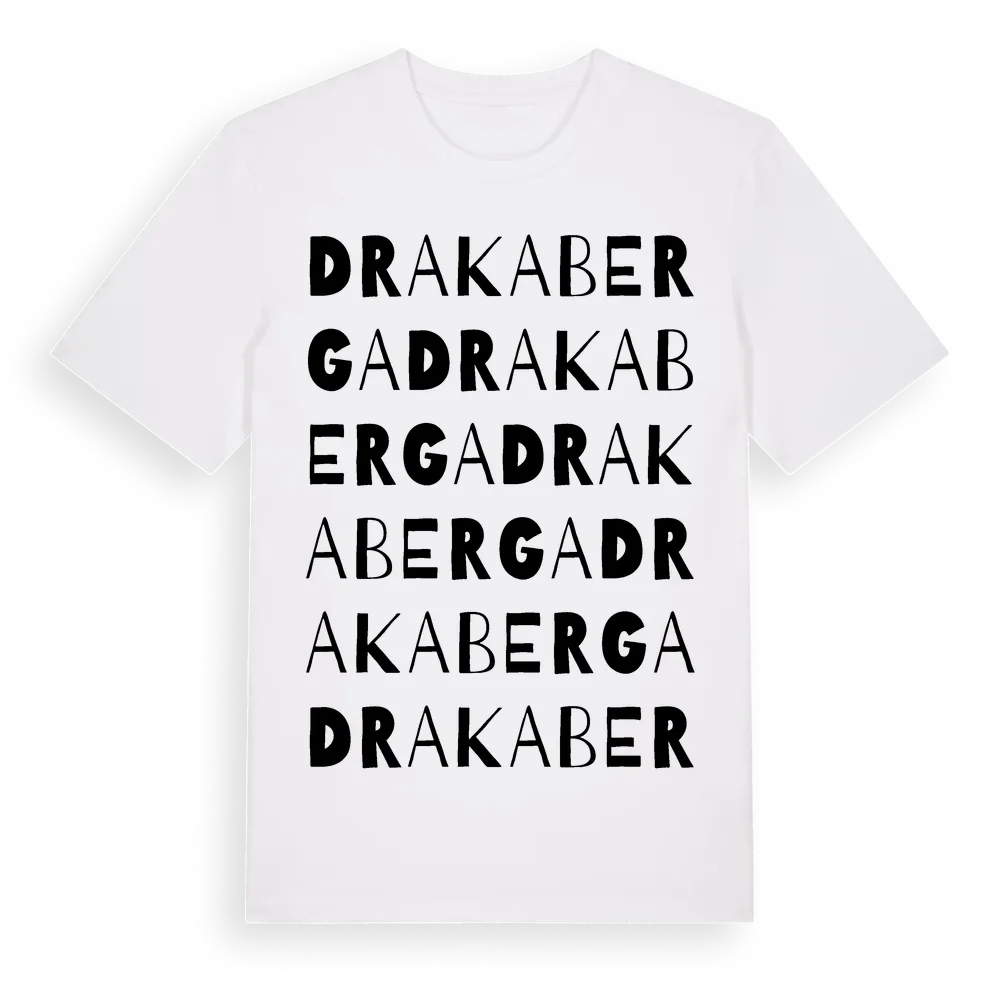 Drakaberga ordlek t-shirt är inspirerad av Drakaberga i Skåne län, Sverige. Tröjan är designad för dig som har en speciell koppling till platsen – oavsett om du bor här, har rötterna här eller bara älskar Drakaberga.