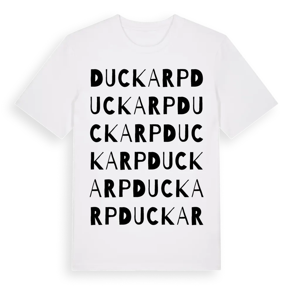 Duckarp ordlek t-shirt är inspirerad av byn Duckarp i Skåne län, Sverige. Tröjan är designad för dig som har en speciell koppling till platsen – oavsett om du bor här, har rötterna här eller bara älskar Duckarp.