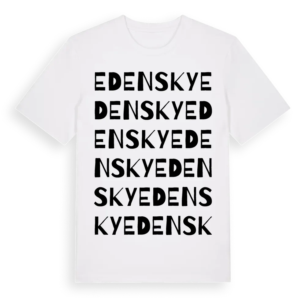 Edensky ordlek t-shirt är inspirerad av Edensky i Skåne län, Sverige. Tröjan är designad för dig som har en speciell koppling till platsen – oavsett om du bor här, har rötterna här eller bara älskar Edensky.