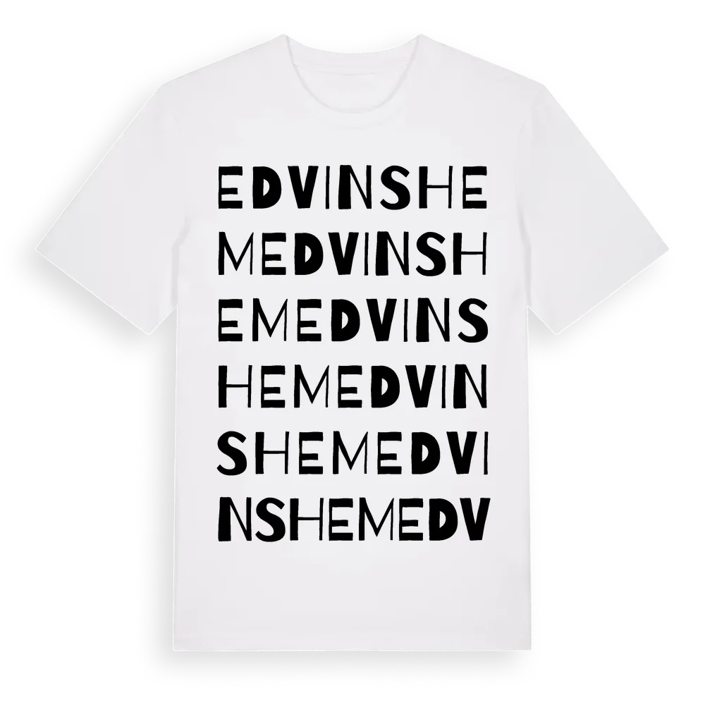 Edvinshem ordlek t-shirt är inspirerad av stadsdelen Edvinshem i Skåne län, Sverige. Tröjan är designad för dig som har en speciell koppling till platsen – oavsett om du bor här, har rötterna här eller bara älskar Edvinshem.