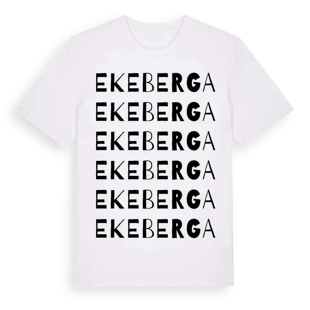 Ekeberga ordlek t-shirt är inspirerad av Ekeberga i Skåne län, Sverige. Tröjan är designad för dig som har en speciell koppling till platsen – oavsett om du bor här, har rötterna här eller bara älskar Ekeberga.