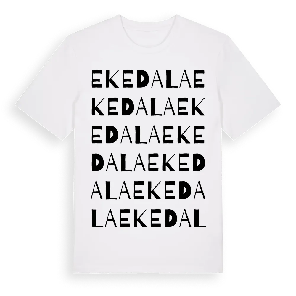 Ekedala ordlek t-shirt är inspirerad av Ekedala i Skåne län, Sverige. Tröjan är designad för dig som har en speciell koppling till platsen – oavsett om du bor här, har rötterna här eller bara älskar Ekedala.