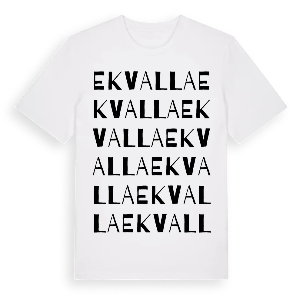 Ekvalla ordlek t-shirt är inspirerad av Ekvalla i Skåne län, Sverige. Tröjan är designad för dig som har en speciell koppling till platsen – oavsett om du bor här, har rötterna här eller bara älskar Ekvalla.