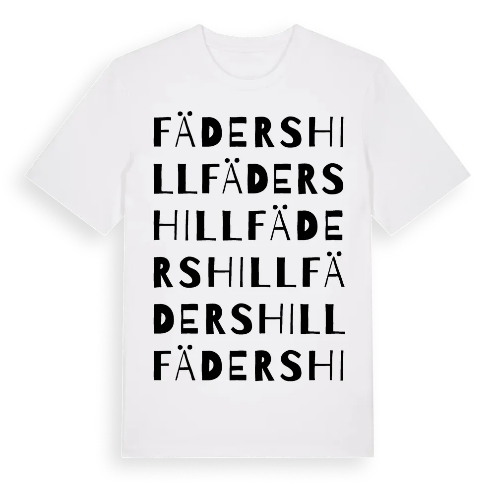 Fädershill ordlek t-shirt är inspirerad av Fädershill i Skåne län, Sverige. Tröjan är designad för dig som har en speciell koppling till platsen – oavsett om du bor här, har rötterna här eller bara älskar Fädershill.