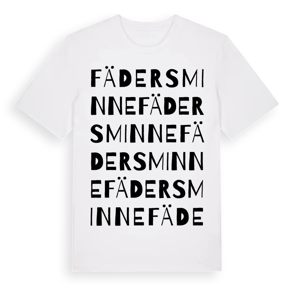 Fädersminne ordlek t-shirt är inspirerad av Fädersminne i Skåne län, Sverige. Tröjan är designad för dig som har en speciell koppling till platsen – oavsett om du bor här, har rötterna här eller bara älskar Fädersminne.