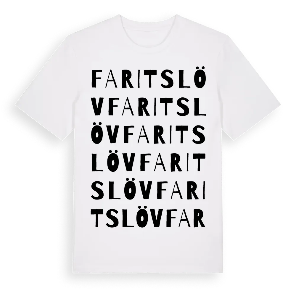 Faritslöv ordlek t-shirt är inspirerad av byn Faritslöv i Skåne län, Sverige. Tröjan är designad för dig som har en speciell koppling till platsen – oavsett om du bor här, har rötterna här eller bara älskar Faritslöv.