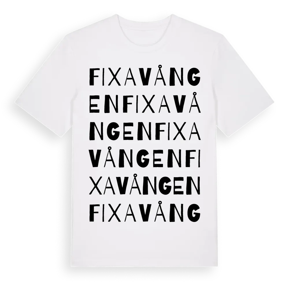 Fixavången ordlek t-shirt är inspirerad av Fixavången i Skåne län, Sverige. Tröjan är designad för dig som har en speciell koppling till platsen – oavsett om du bor här, har rötterna här eller bara älskar Fixavången.