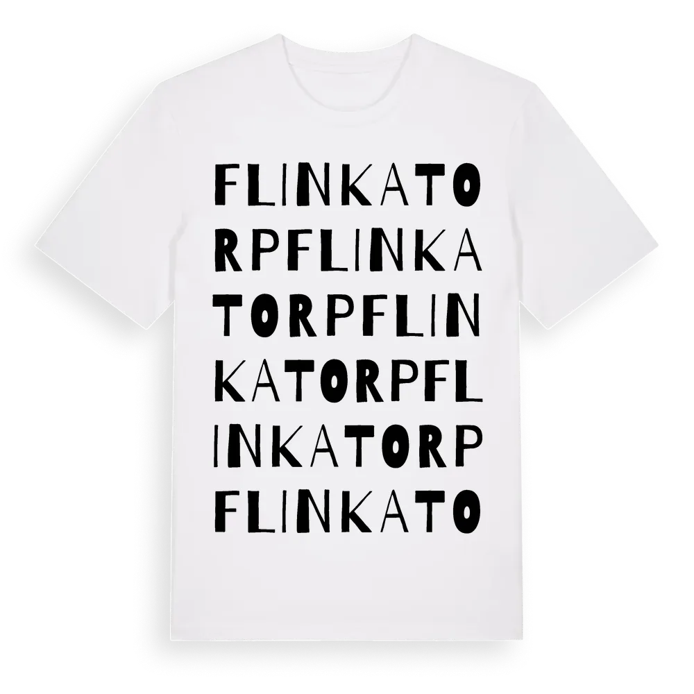 Flinkatorp ordlek t-shirt är inspirerad av Flinkatorp i Skåne län, Sverige. Tröjan är designad för dig som har en speciell koppling till platsen – oavsett om du bor här, har rötterna här eller bara älskar Flinkatorp.
