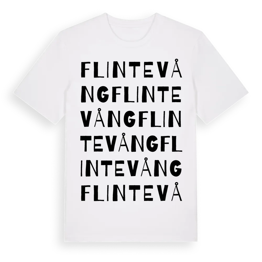 Flintevång ordlek t-shirt är inspirerad av byn Flintevång i Skåne län, Sverige. Tröjan är designad för dig som har en speciell koppling till platsen – oavsett om du bor här, har rötterna här eller bara älskar Flintevång.