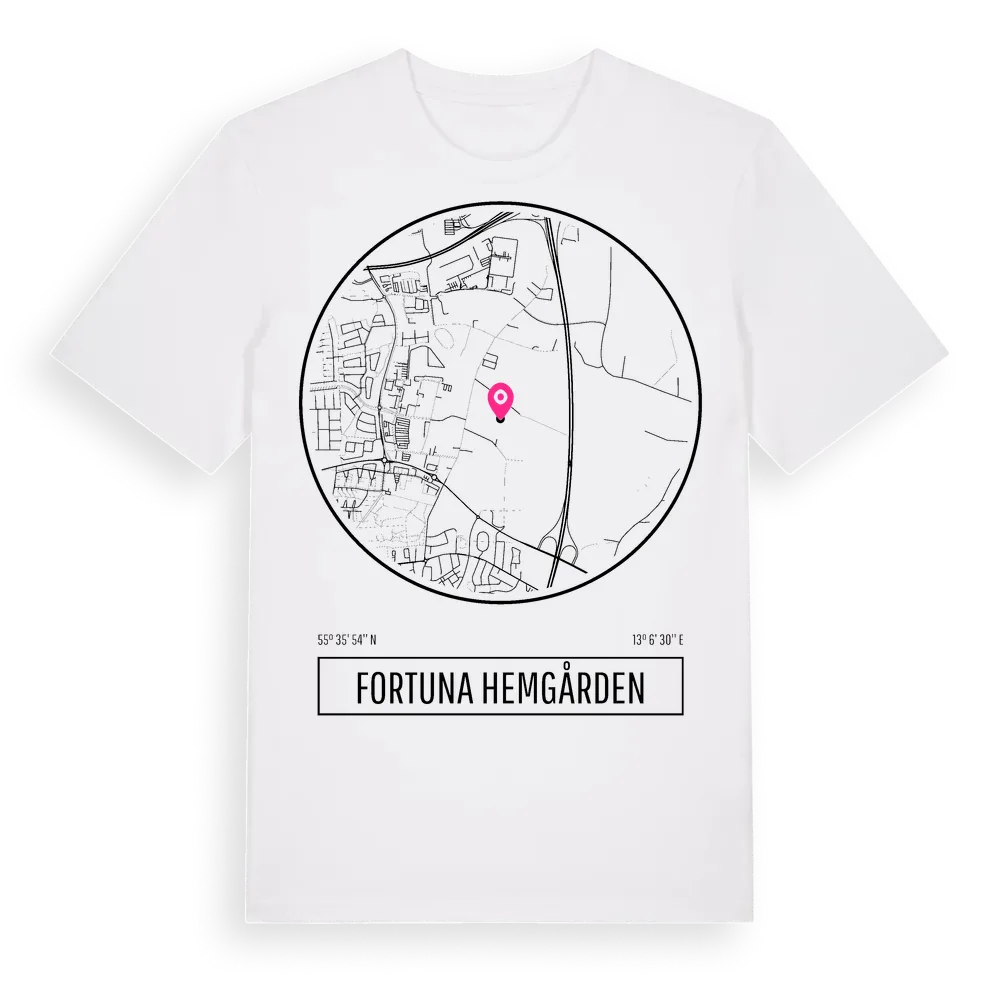 Fortuna Hemgården t-shirt är inspirerad av Fortuna Hemgården i Skåne län, Sverige. Tröjan är designad för dig som har en speciell koppling till platsen – oavsett om du bor här, har rötterna här eller bara älskar Fortuna Hemgården.