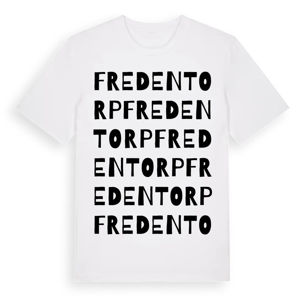 Fredentorp ordlek t-shirt är inspirerad av Fredentorp i Skåne län, Sverige. Tröjan är designad för dig som har en speciell koppling till platsen – oavsett om du bor här, har rötterna här eller bara älskar Fredentorp.