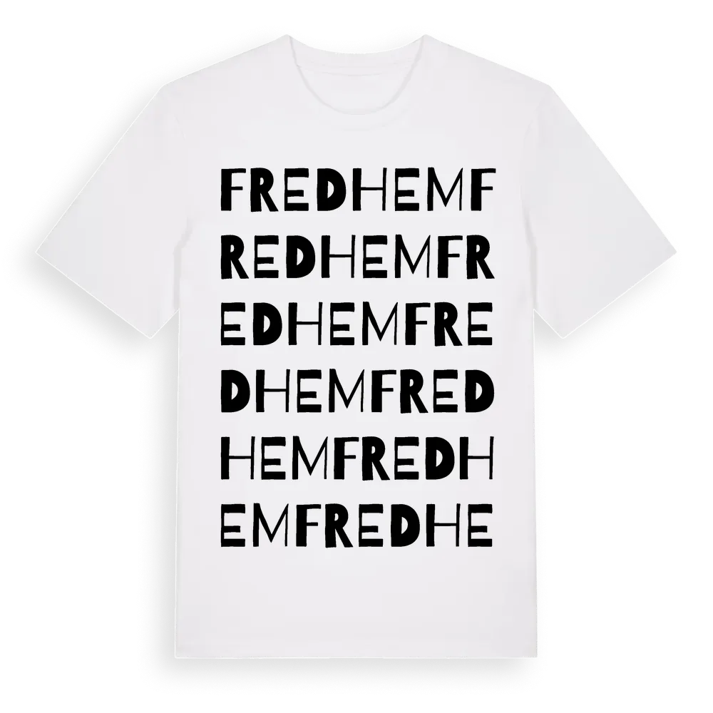 Fredhem ordlek t-shirt är inspirerad av Fredhem i Skåne län, Sverige. Tröjan är designad för dig som har en speciell koppling till platsen – oavsett om du bor här, har rötterna här eller bara älskar Fredhem.