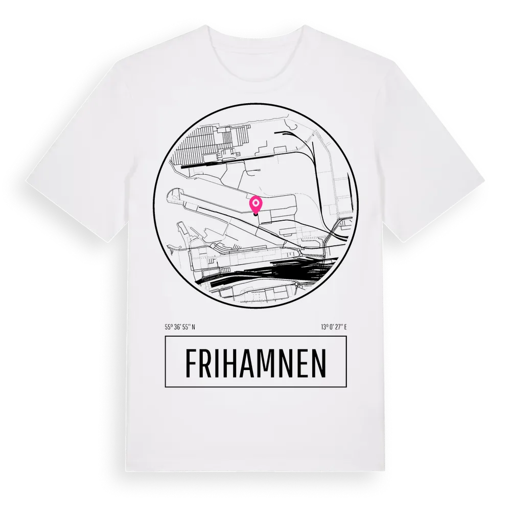 Frihamnen t-shirt är inspirerad av Frihamnen i Skåne län, Sverige. Tröjan är designad för dig som har en speciell koppling till platsen – oavsett om du bor här, har rötterna här eller bara älskar Frihamnen.