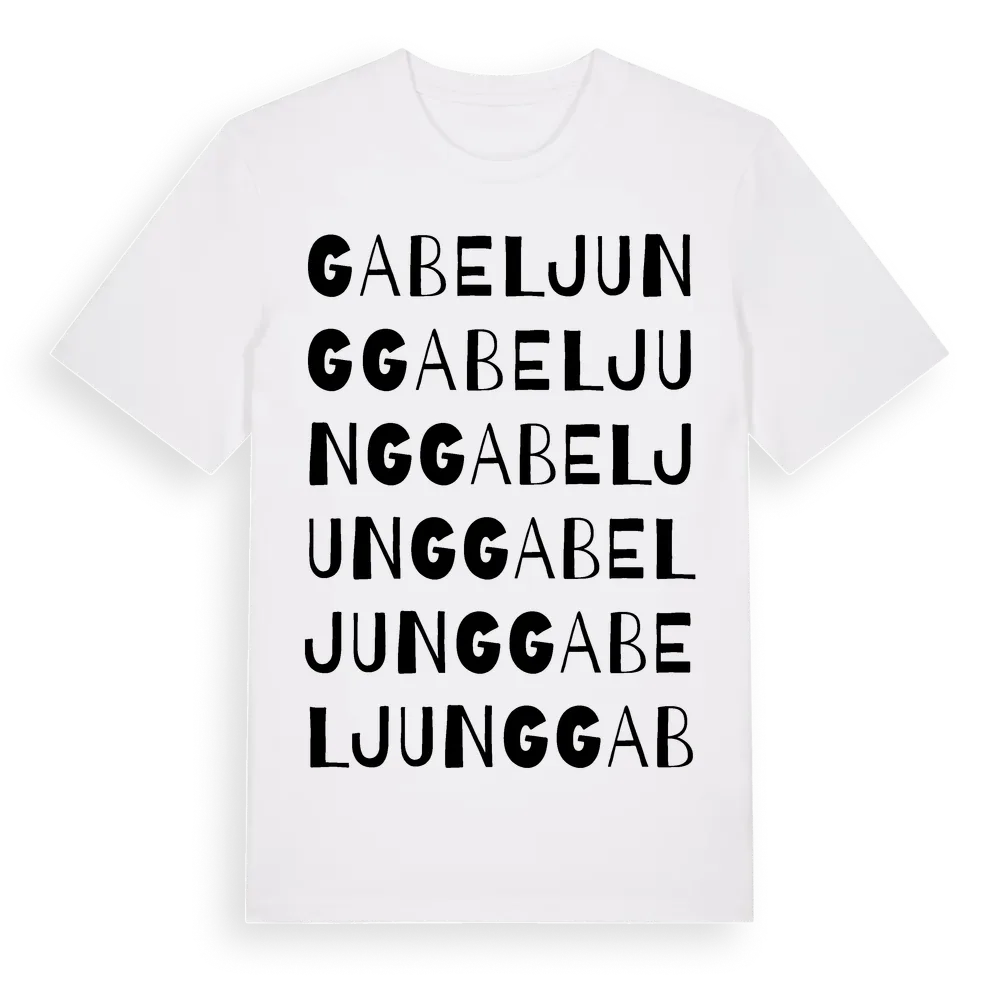 Gabeljung ordlek t-shirt är inspirerad av Gabeljung i Skåne län, Sverige. Tröjan är designad för dig som har en speciell koppling till platsen – oavsett om du bor här, har rötterna här eller bara älskar Gabeljung.