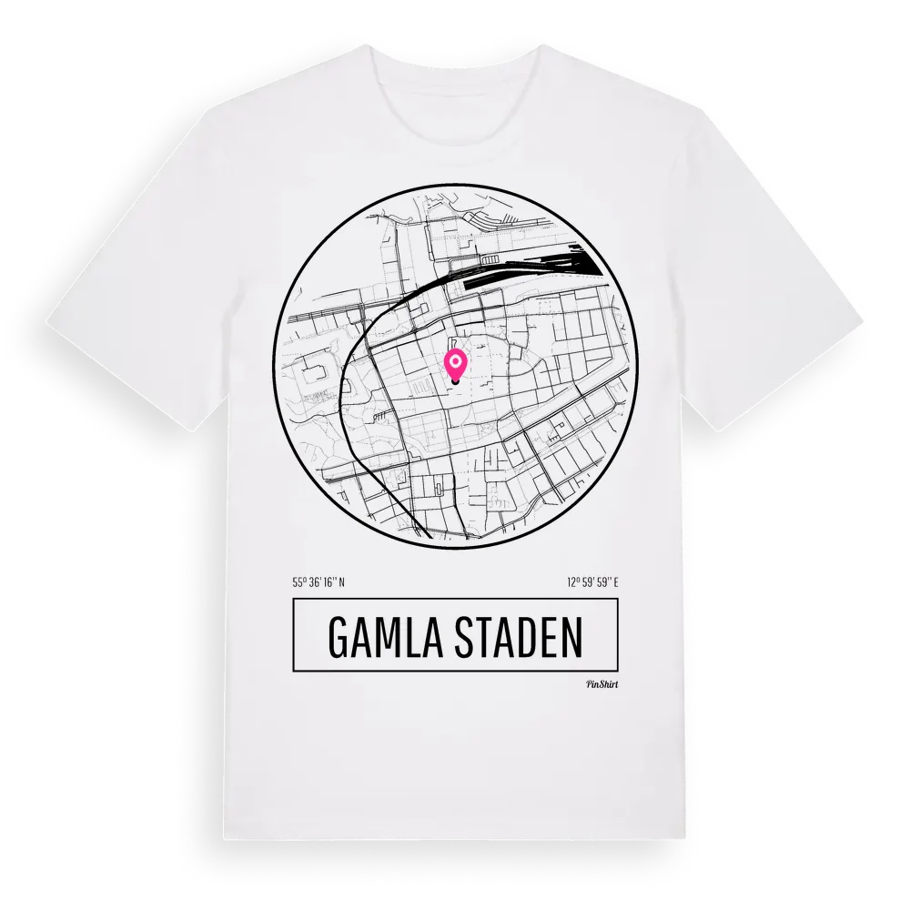 Ett rent, runt tryck med Gamla Stadens namn. Minimalistiskt och stilrent – perfekt för den som känner platsen utan att skrika det. Premium bomull, unisex – från stadsdelen Gamla Staden i Skåne län.