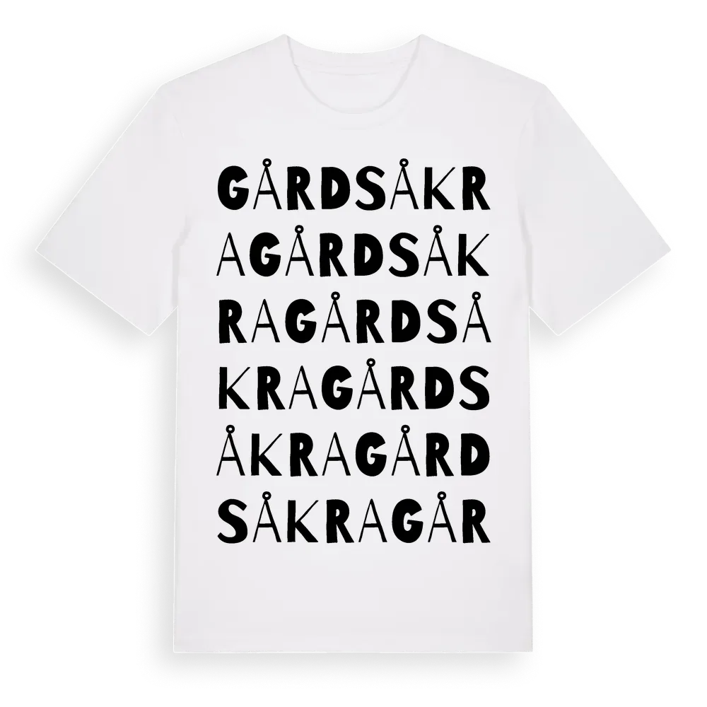 Gårdsåkra ordlek t-shirt är inspirerad av stadsdelen Gårdsåkra i Skåne län, Sverige. Tröjan är designad för dig som har en speciell koppling till platsen – oavsett om du bor här, har rötterna här eller bara älskar Gårdsåkra.