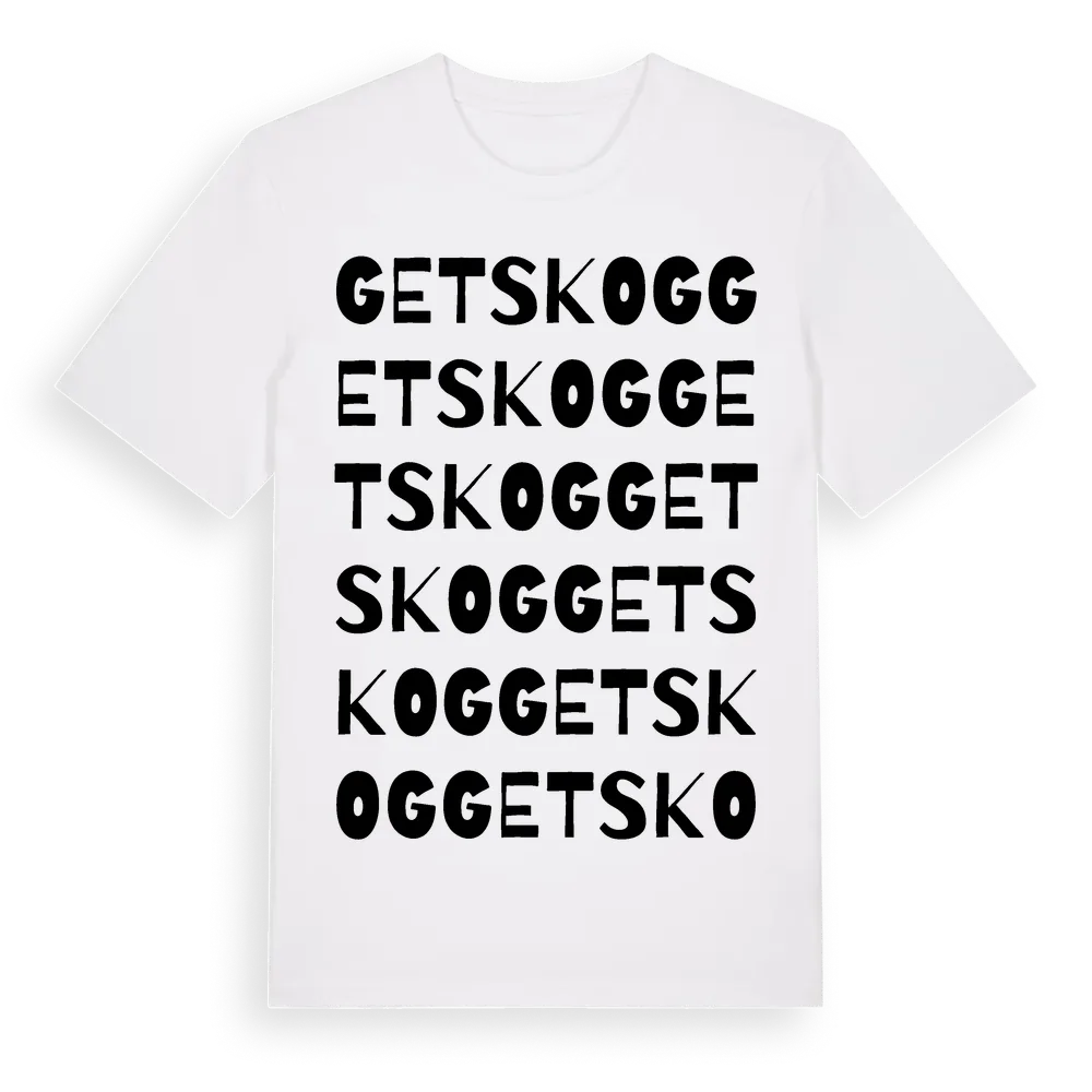 Getskog ordlek t-shirt är inspirerad av Getskog i Skåne län, Sverige. Tröjan är designad för dig som har en speciell koppling till platsen – oavsett om du bor här, har rötterna här eller bara älskar Getskog.