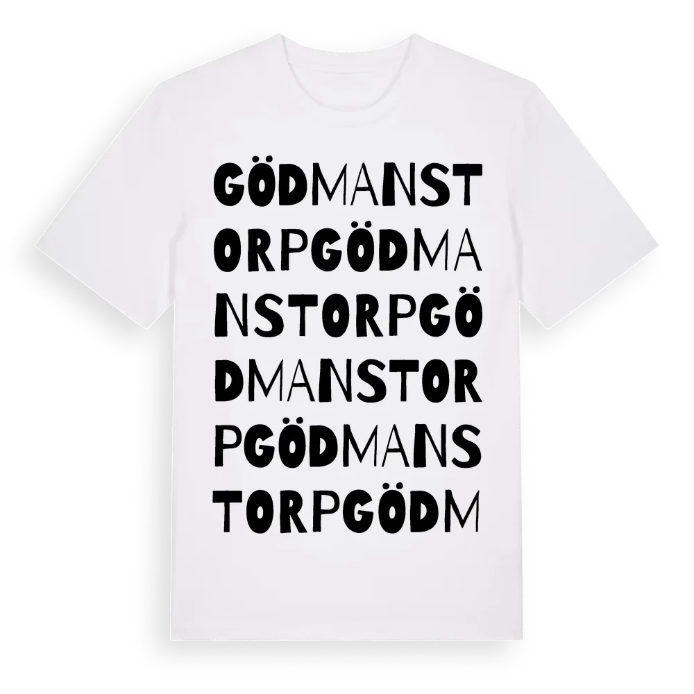 Gödmanstorp ordlek t-shirt är inspirerad av Gödmanstorp i Skåne län, Sverige. Tröjan är designad för dig som har en speciell koppling till platsen – oavsett om du bor här, har rötterna här eller bara älskar Gödmanstorp.