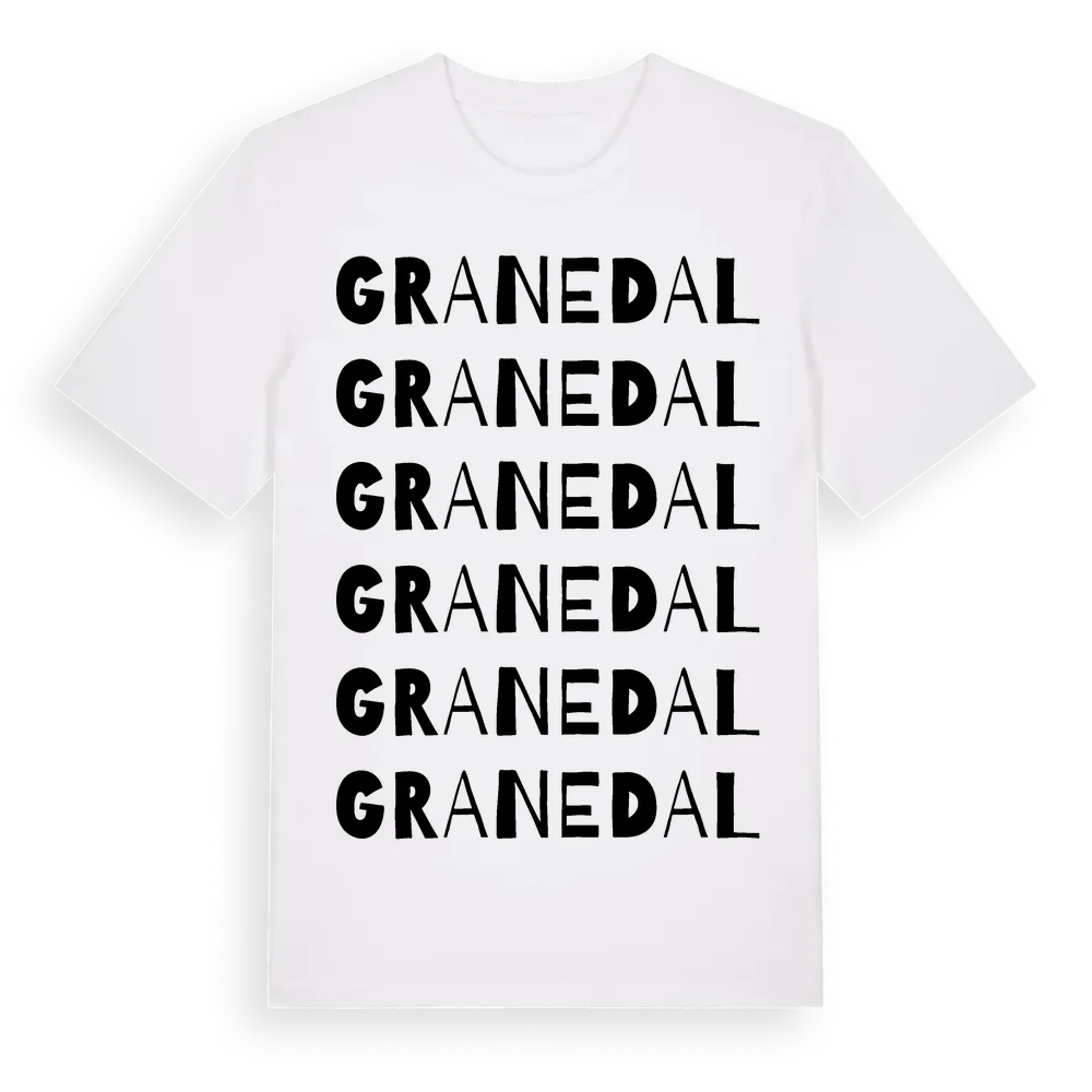 Granedal ordlek t-shirt är inspirerad av Granedal i Skåne län, Sverige. Tröjan är designad för dig som har en speciell koppling till platsen – oavsett om du bor här, har rötterna här eller bara älskar Granedal.