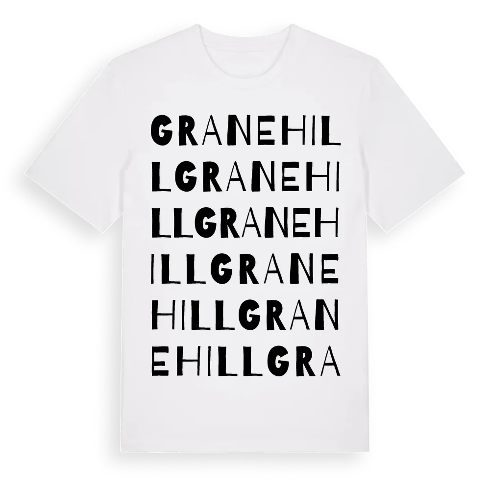 Granehill ordlek t-shirt är inspirerad av Granehill i Skåne län, Sverige. Tröjan är designad för dig som har en speciell koppling till platsen – oavsett om du bor här, har rötterna här eller bara älskar Granehill.