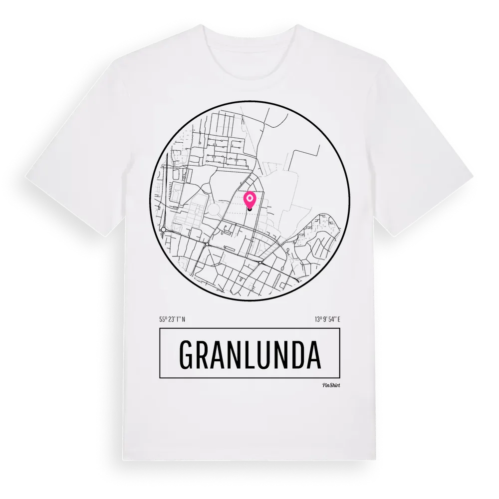 Ett rent, runt tryck med Granlundas namn. Minimalistiskt och stilrent – perfekt för den som känner platsen utan att skrika det. Premium bomull, unisex – från stadsdelen Granlunda i Skåne län.