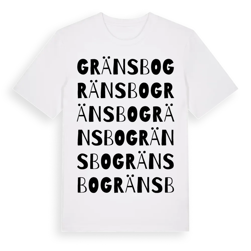 Gränsbo ordlek t-shirt är inspirerad av Gränsbo i Skåne län, Sverige. Tröjan är designad för dig som har en speciell koppling till platsen – oavsett om du bor här, har rötterna här eller bara älskar Gränsbo.