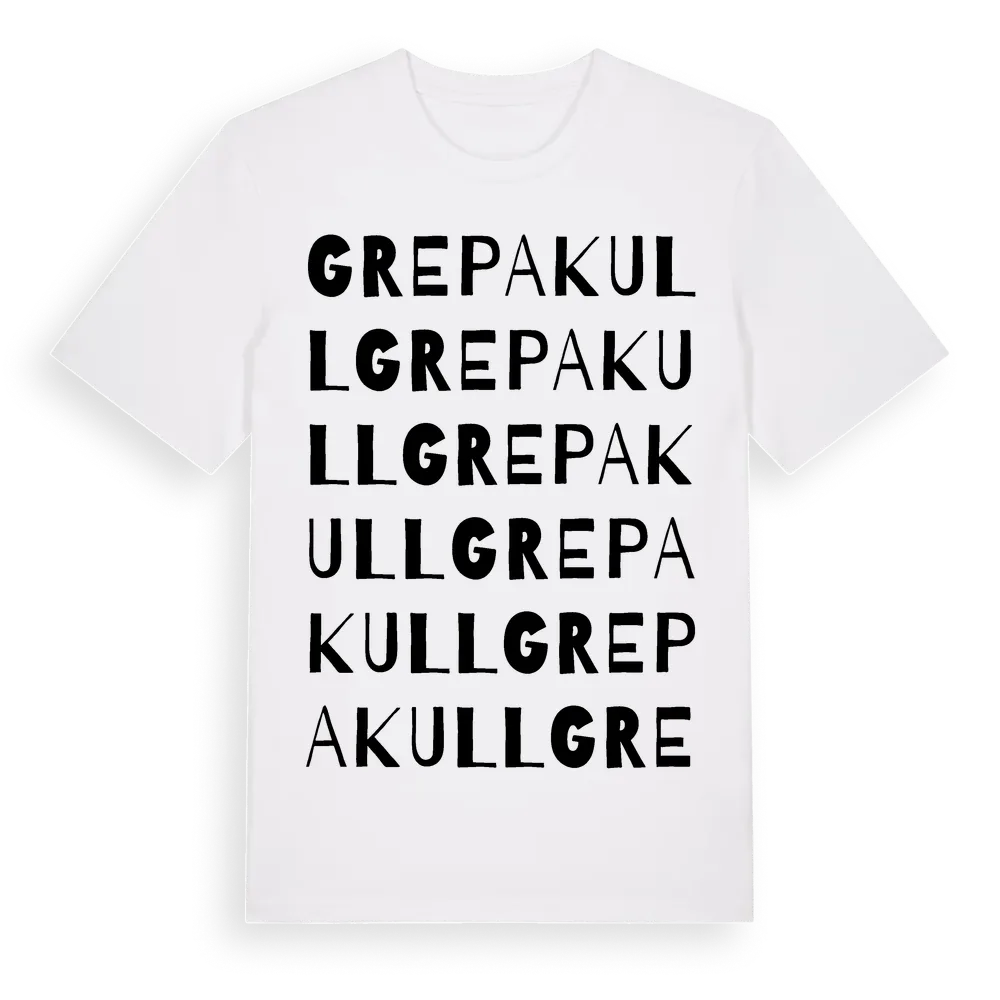 Grepakull ordlek t-shirt är inspirerad av Grepakull i Skåne län, Sverige. Tröjan är designad för dig som har en speciell koppling till platsen – oavsett om du bor här, har rötterna här eller bara älskar Grepakull.