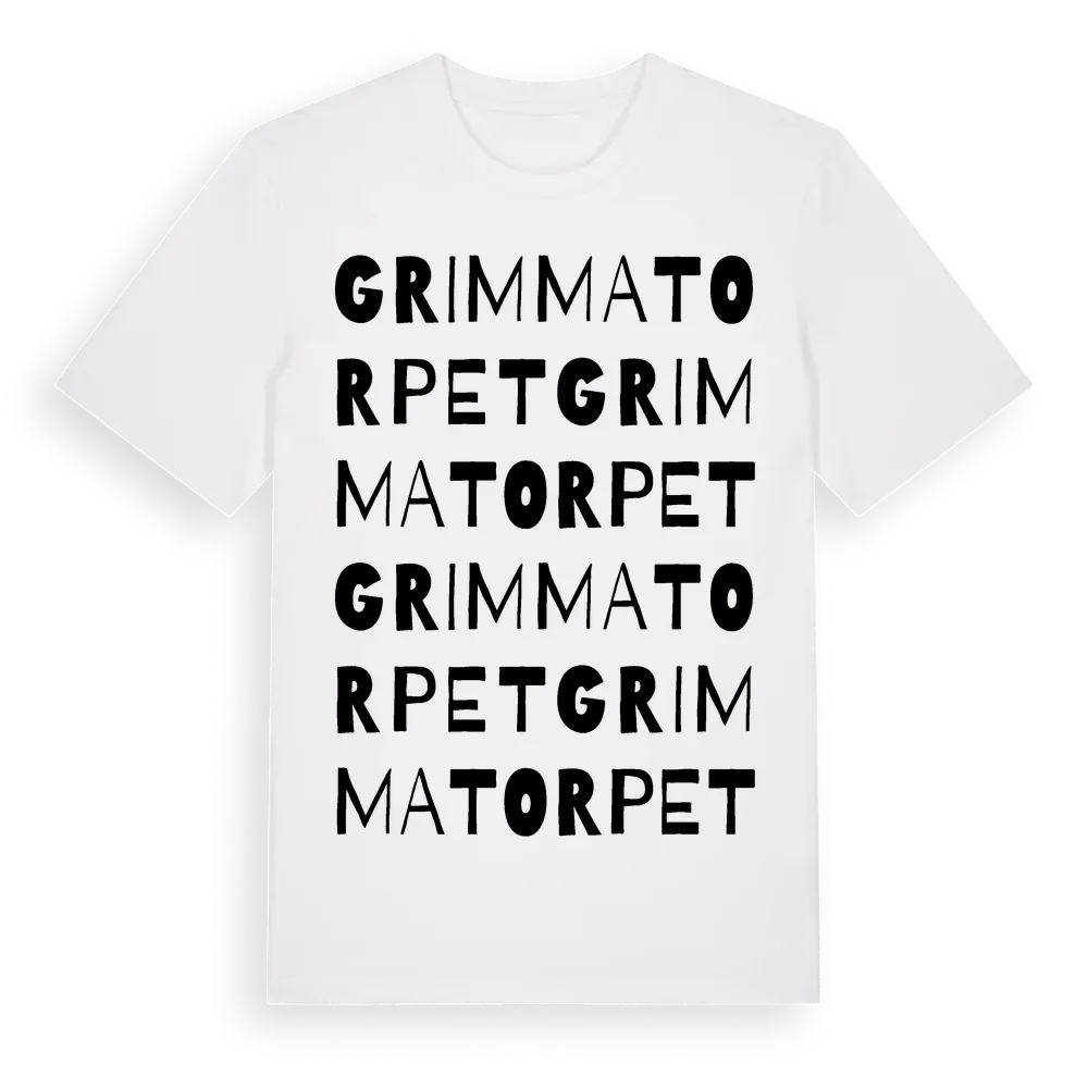 Grimmatorpet ordlek t-shirt är inspirerad av Grimmatorpet i Skåne län, Sverige. Tröjan är designad för dig som har en speciell koppling till platsen – oavsett om du bor här, har rötterna här eller bara älskar Grimmatorpet.