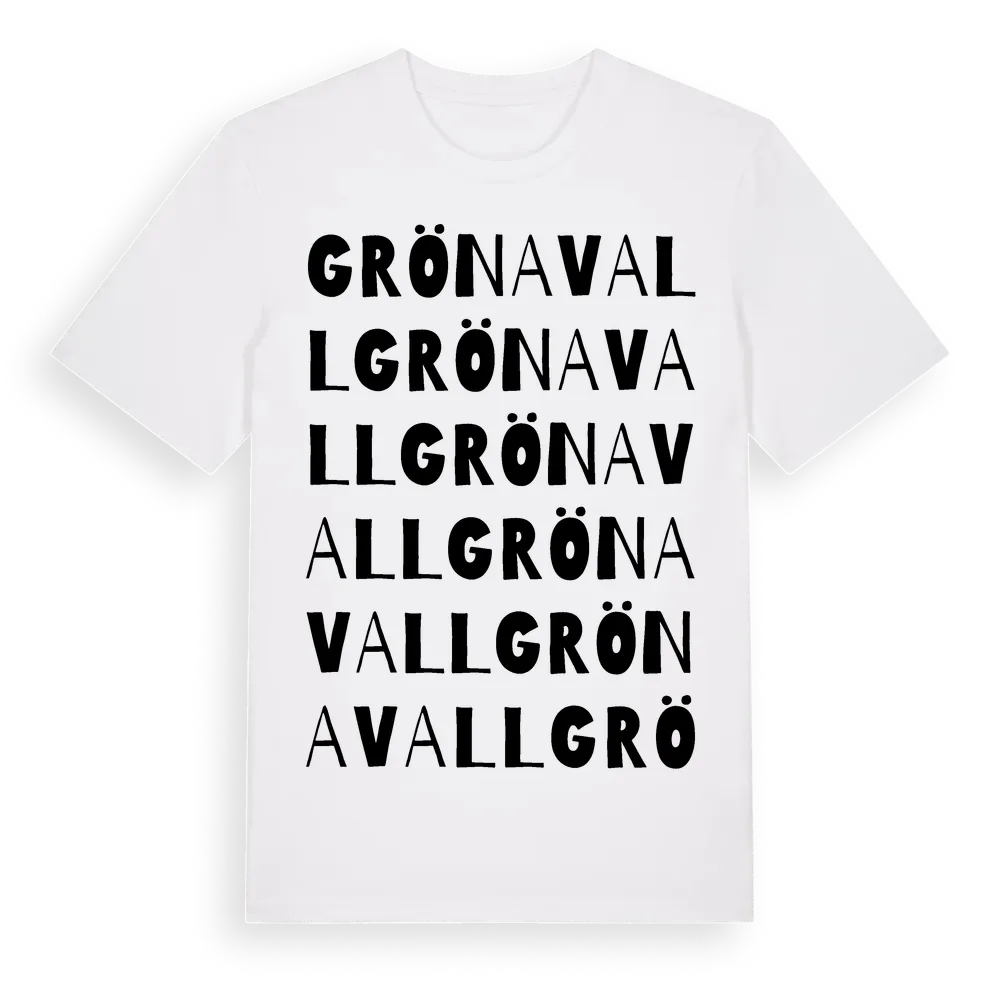Grönavall ordlek t-shirt är inspirerad av Grönavall i Skåne län, Sverige. Tröjan är designad för dig som har en speciell koppling till platsen – oavsett om du bor här, har rötterna här eller bara älskar Grönavall.