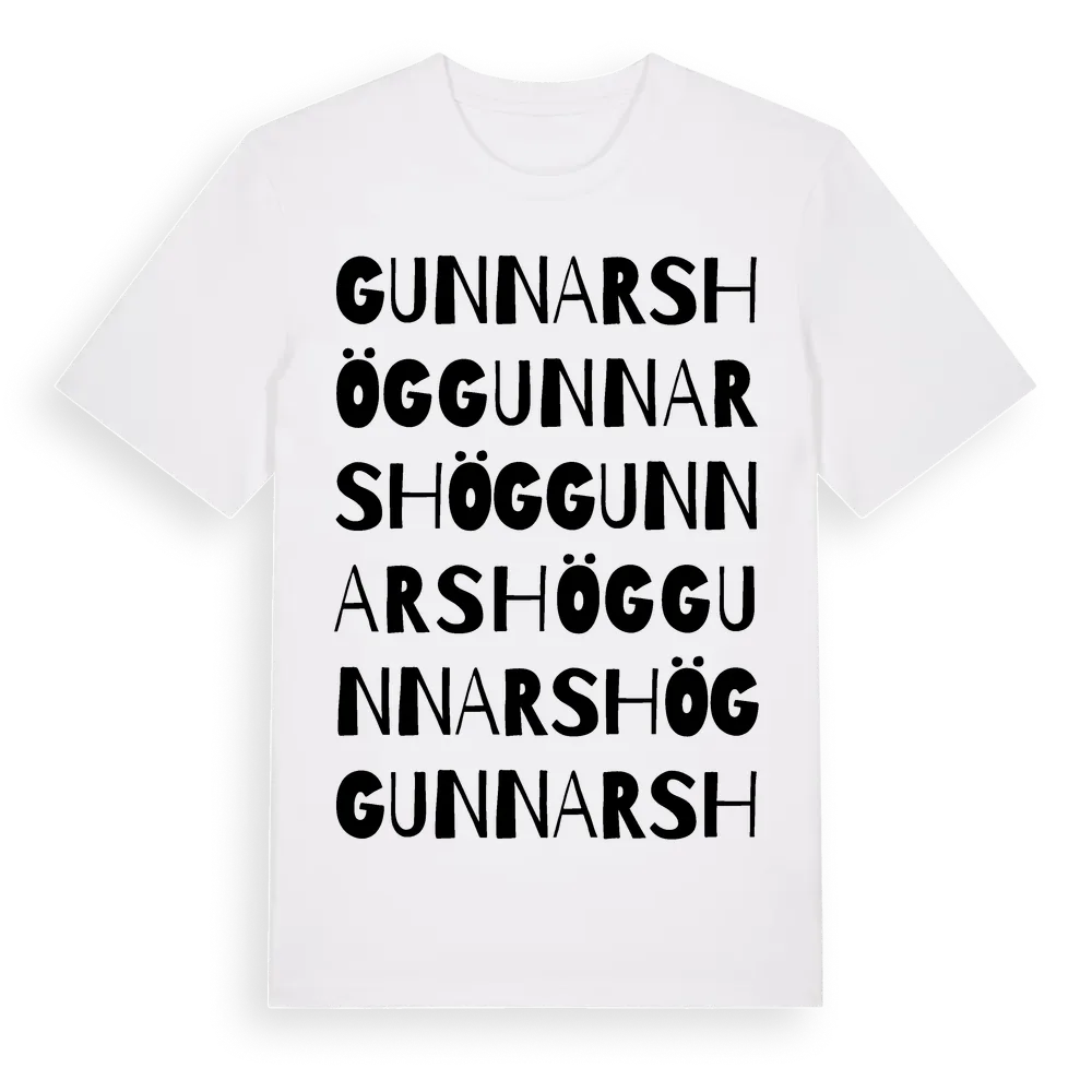 Gunnarshög ordlek t-shirt är inspirerad av Gunnarshög i Skåne län, Sverige. Tröjan är designad för dig som har en speciell koppling till platsen – oavsett om du bor här, har rötterna här eller bara älskar Gunnarshög.