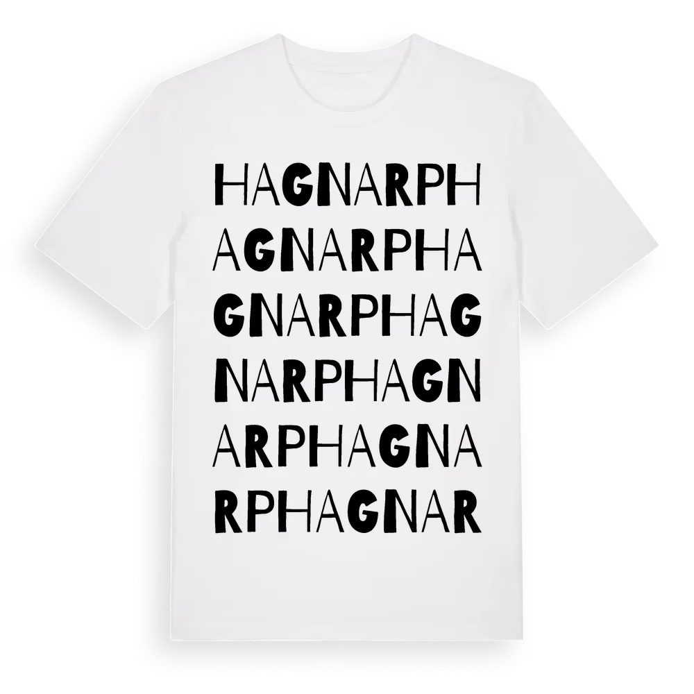 Hagnarp ordlek t-shirt är inspirerad av byn Hagnarp i Skåne län, Sverige. Tröjan är designad för dig som har en speciell koppling till platsen – oavsett om du bor här, har rötterna här eller bara älskar Hagnarp.
