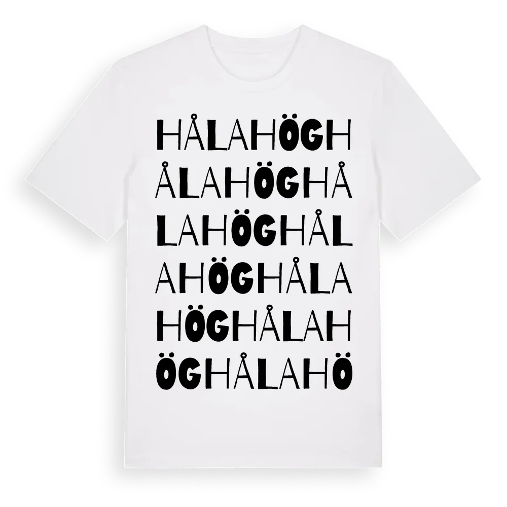 Hålahög ordlek t-shirt är inspirerad av Hålahög i Skåne län, Sverige. Tröjan är designad för dig som har en speciell koppling till platsen – oavsett om du bor här, har rötterna här eller bara älskar Hålahög.