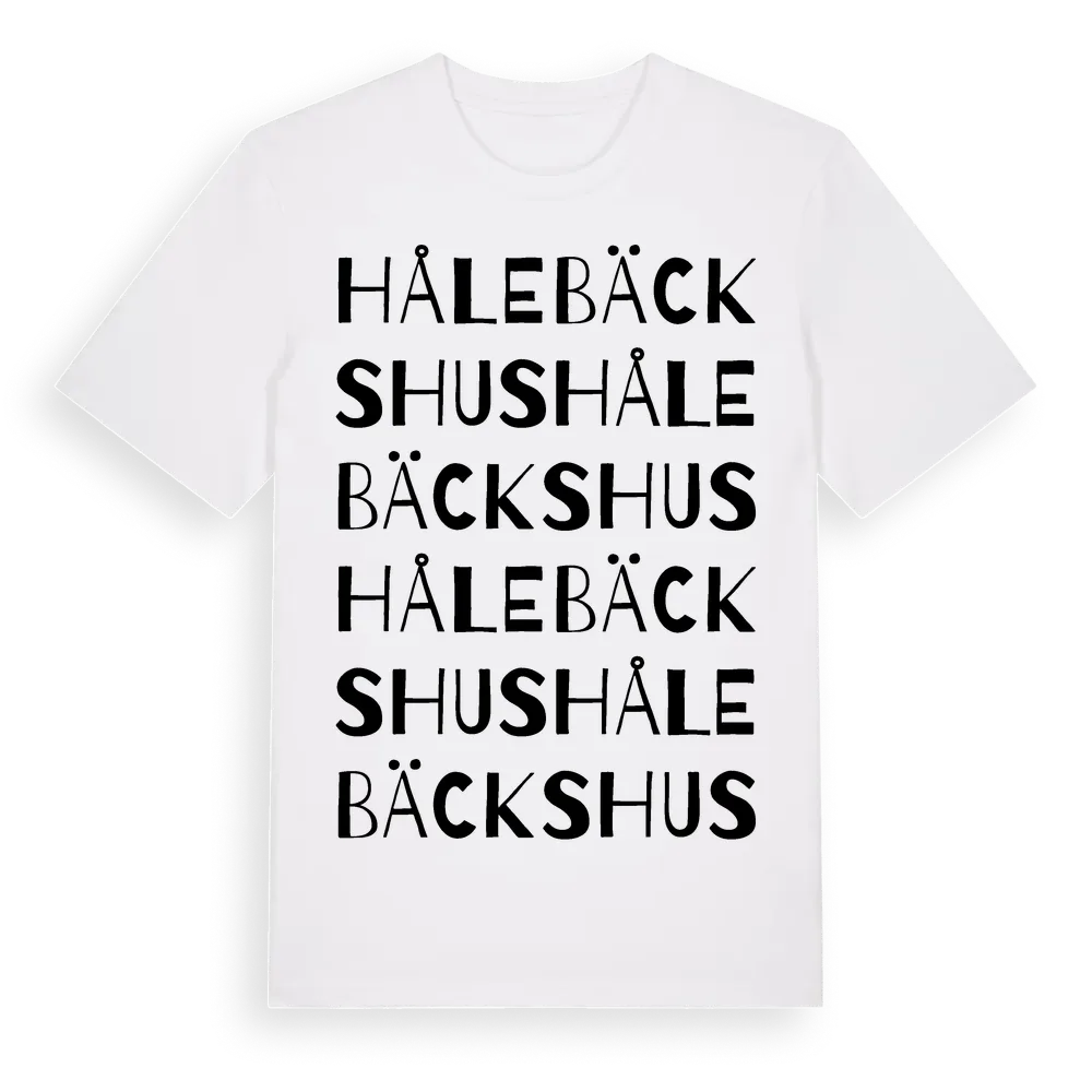 Hålebäckshus ordlek t-shirt är inspirerad av Hålebäckshus i Skåne län, Sverige. Tröjan är designad för dig som har en speciell koppling till platsen – oavsett om du bor här, har rötterna här eller bara älskar Hålebäckshus.