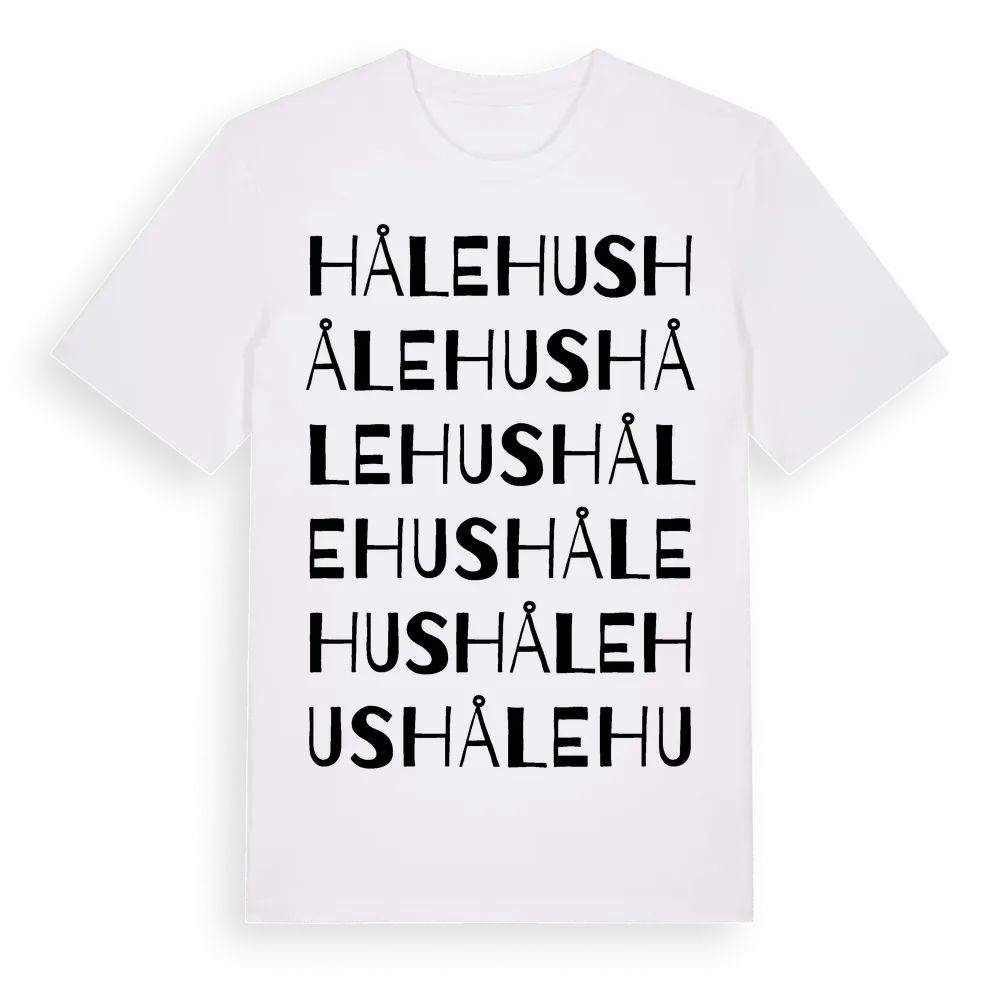 Hålehus ordlek t-shirt är inspirerad av Hålehus i Skåne län, Sverige. Tröjan är designad för dig som har en speciell koppling till platsen – oavsett om du bor här, har rötterna här eller bara älskar Hålehus.