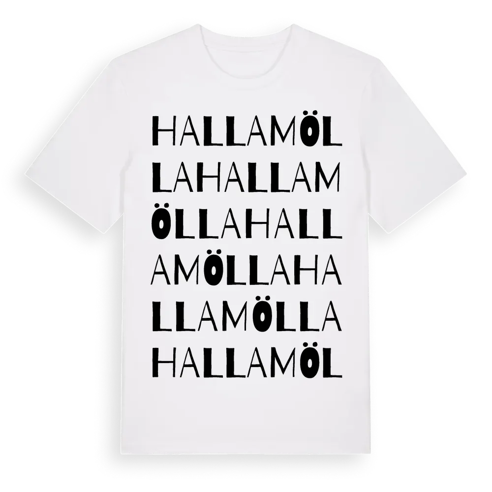 En ordlek byggd på Hallamöllas namn. Subtilt och klurig – ett motiv som bara de som verkligen känner platsen fullt ut förstår. Premium bomull, unisex – från Hallamölla i Skåne län.